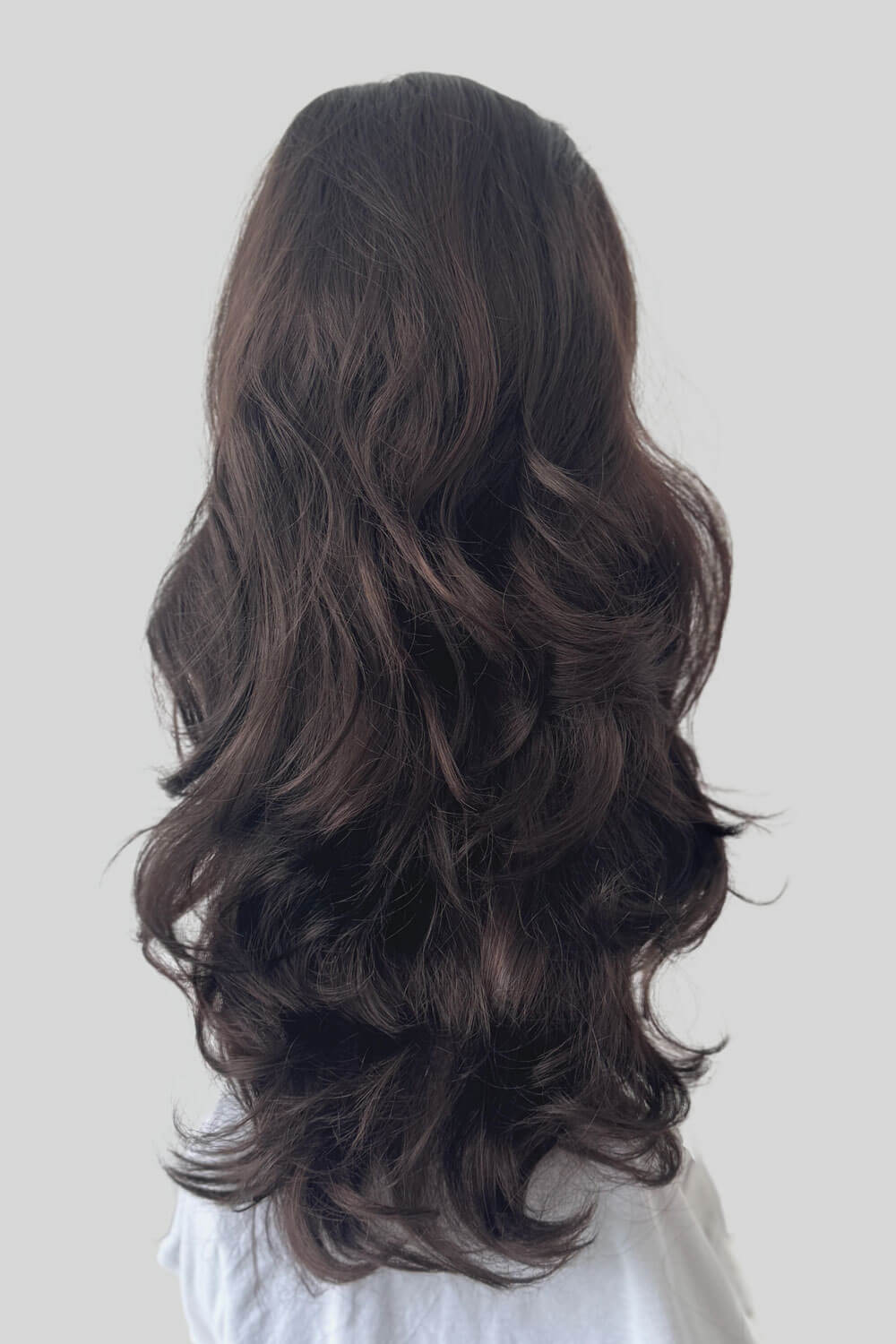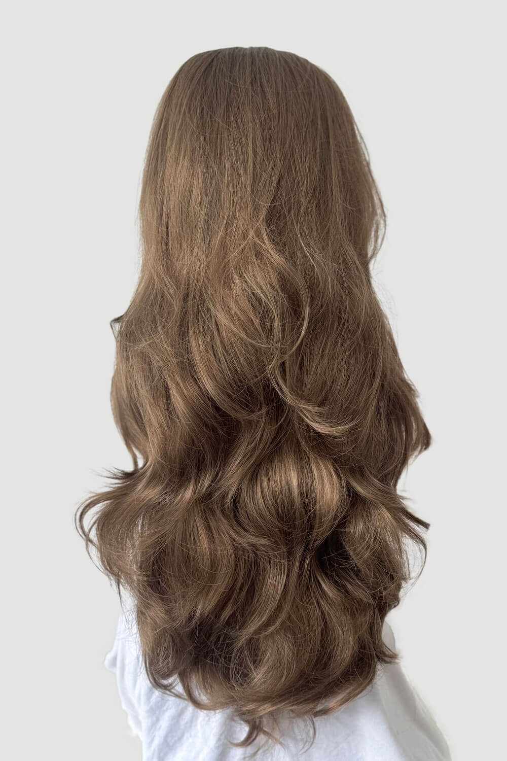 Haute couronne longue, demi-perruque ondulée et anneau de volume: Bardot