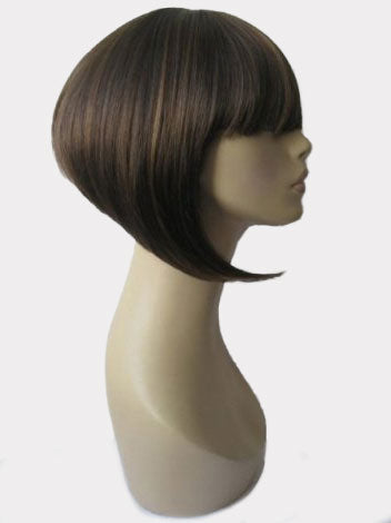 Perruque bob inversé marron chocolat avec mèches blondes: Keira